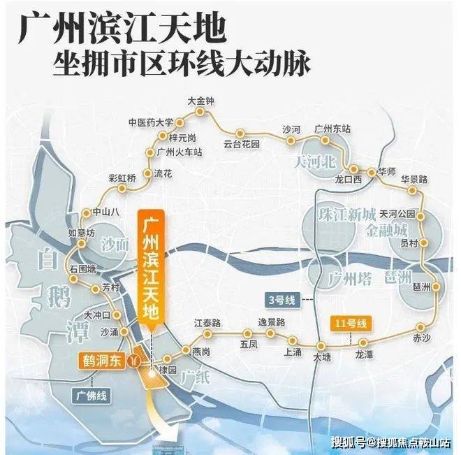项目紧邻地铁11号线鹤洞东站,直线米,且规划中的佛山地铁11号线也将在项目南侧设站,通过广州首条环线号线,能够迅速连接珠江新城等重要区域。此外,项目还引入了“TOD”模式,实现了站城一体化设计,联通城市、车、人和轨道系统,并规划水上巴士服务,逐步提升了出行的便利性。